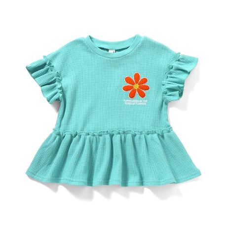 apres les cours(アプレレクール)の半袖Tシャツ「フラワーワッペンペプラムモチーフTシャツ」は、ナチュラルなスタイルにさりげなくデザインをプラスしたおしゃれアイテム*