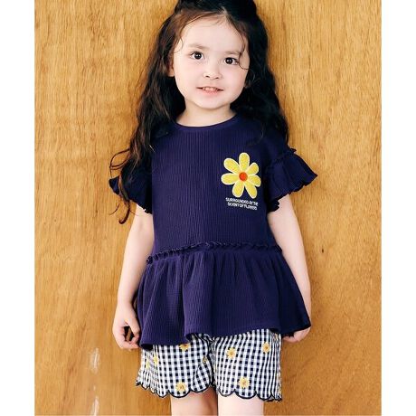 apres les cours(アプレレクール)の半袖Tシャツ「フラワーワッペンペプラムモチーフTシャツ」は、ナチュラルなスタイルにさりげなくデザインをプラスしたおしゃれアイテム*