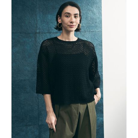■デザイントレンドを感じさせる、クロシェレースのプルオーバー。ヴィンテージライクな雰囲気のクロシェレースが華やかさをプラスし、一枚で着映えるアイテムです。肘が隠れる6分袖で、春から秋口まで長くご着用いただけます。ほっこりしないシンプルなクロシェレース柄で、デニムを合わせたカジュアルスタイリングはもちろん、きれいめなパンツ合わせもおすすめです。