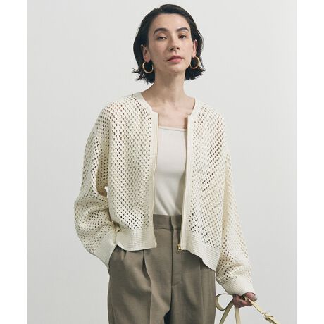 ■デザイントレンドを感じさせる、クロシェレースのZIPカーディガン。ヴィンテージライクな雰囲気のクロシェレースで、1枚で着映える羽織りアイテムです。カットソーやワンピースの上に羽織ったり、ZIPを途中まであけでキーネック風のプルオーバーとしてもご着用いただけます。