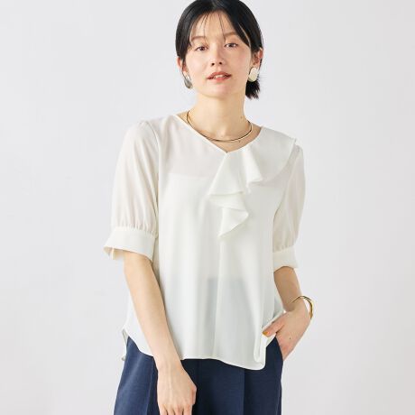 ウォッシャブルジョーゼットアシメラッフルブラウス