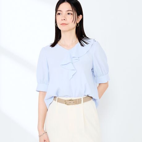 ウォッシャブルジョーゼットアシメラッフルブラウス