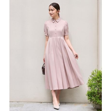 シルエットを美しく保ちながらも、春夏らしい軽やかさを感じさせる上品な襟付きワンピース。