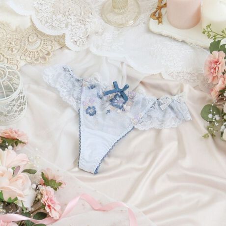 満開の花々を束ねたブーケをモチーフにした、ロマンティックなシリーズです。色とりどりのお花が咲きほこるレースは、ラメ糸をあしらい上品な輝きに。クラシカルな「トーションレース」をモチーフに現代風にアレンジし、スカラップをリボン柄で表現することで、繊細ながらも大人の可愛らしさを演出しました。サイドにはアシンメトリーにリボンアップリケをあしらい、特別感をプラス。細部にまでこだわり抜いた装飾が、見ているだけで心をときめかせてくれる豪華なコレクションです。