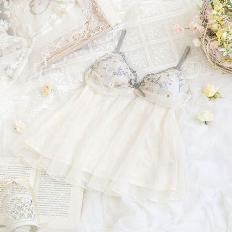 カップがついたタイプのキャミソールなので、ブラジャーを着けずにこれ1枚でご着用いただけます。身生地はチュール素材を使用しており、さらりとした気持ちの良い着心地です。綿混素材の裏地は伸縮性があり、ご着用していてストレスを感じにくい仕様になっております。
