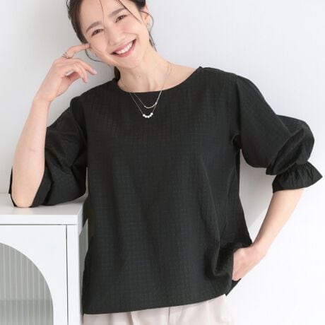 程よい厚みでサラッと、サッカーの凹凸が特徴的なブラウス素材を使用しています。