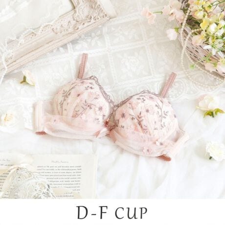 野に咲く花々を立体的に咲かせた、可憐なシリーズです。繊細に刺繍された花々には立体感のあるパッカー手法をほどこして、可愛らしく動きのある印象に。2種類のアップリケや透明感のあるギャザーチュールとの組み合わせが、より一層の軽やかさと温かみのあるデザインに仕上がりました。レース上辺にはアーチのような幾何学模様をあしらい、クラシカルな上品さもプラスしています。まるでお花が風に吹かれて舞っているような、新しい季節の訪れを感じるコレクションです。