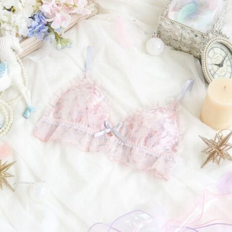 ペガサスとバンビが舞い踊る、夢の世界をイメージしたルームシリーズです。キラキラと降り注ぐ星や鮮やかな虹が織りなすレースで、まるで夢の中のようなロマンティックな可愛らしさに仕上がりました。カップ上辺にはギャザーチュールをふんだんにあしらい、ふわふわとしたディテールで世界観を後押し。リボン中央に添えた立体的な月のチャームは、動くたびにラインストーンがきらめき、特別感を演出します。身に着けるだけで日常にちょっと魔法をかけるような、女の子の心ときめくコレクションです。