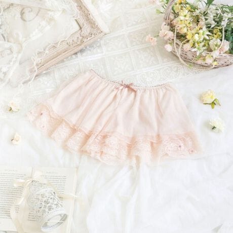 身生地はチュール素材を使用しており、さらりとした気持ちの良い着心地です。綿混素材の裏地は伸縮性があり、ご着用していてストレスを感じにくい仕様になっております。