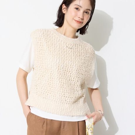 メッシュ編みで仕立てた軽やかな編み地は、程よい抜け感があり、シーズンの変わり目にも取り入れやすいのが魅力。