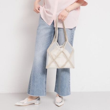 PVCと鍵針編みを切り替えたコントラストが新鮮なトート。