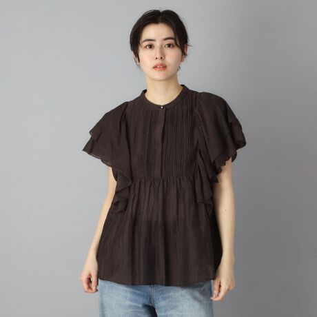 ●ピンタックとラッフルが華やかで、1枚で着映えするブラウス