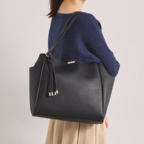 すっきりとしたフォルムに上品なタッセルチャームが揺れるA4対応トートです。