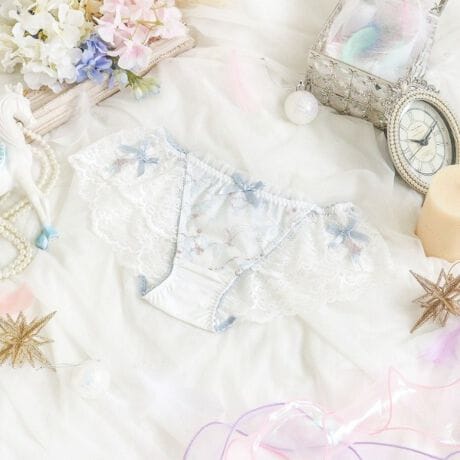 ペガサスとバンビが舞い踊る、夢の世界をイメージしたルームシリーズです。キラキラと降り注ぐ星や鮮やかな虹が織りなすレースで、まるで夢の中のようなロマンティックな可愛らしさに仕上がりました。フロント上辺にはギャザーチュールをふんだんにあしらい、ふわふわとしたディテールで世界観を後押し。両サイドには月と星のアップリケを添えて、特別感を演出します。身に着けるだけで日常にちょっと魔法をかけるような、女の子の心ときめくコレクションです。
