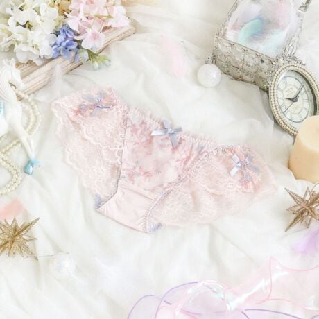 ペガサスとバンビが舞い踊る、夢の世界をイメージしたルームシリーズです。キラキラと降り注ぐ星や鮮やかな虹が織りなすレースで、まるで夢の中のようなロマンティックな可愛らしさに仕上がりました。フロント上辺にはギャザーチュールをふんだんにあしらい、ふわふわとしたディテールで世界観を後押し。両サイドには月と星のアップリケを添えて、特別感を演出します。身に着けるだけで日常にちょっと魔法をかけるような、女の子の心ときめくコレクションです。