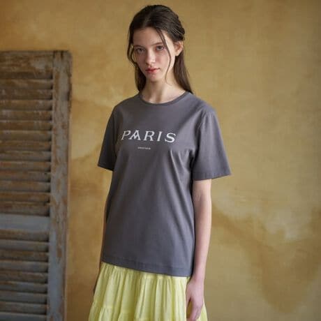 フロントにはミニマルな「PARIS」ロゴ、背面には印象的な英文のメッセージプリントを施し、一枚で着てもサマになる贅沢なデザインに仕上げています。