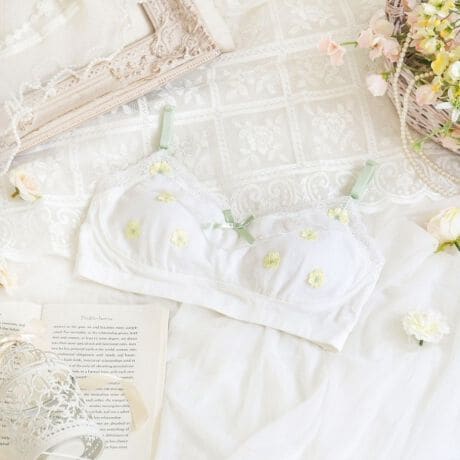 野に咲く花々を立体的に咲かせた、可憐なシリーズです。カップには小花のアップリケを散りばめて、可愛らしく動きのある印象に。透明感のあるギャザーチュールとの組み合わせが、より一層の軽やかさと温かみのあるデザインに仕上がりました。まるでお花が風に吹かれて舞っているような、新しい季節の訪れを感じるコレクションです。