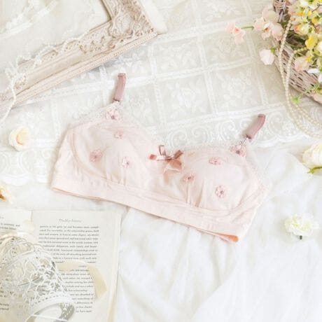 野に咲く花々を立体的に咲かせた、可憐なシリーズです。カップには小花のアップリケを散りばめて、可愛らしく動きのある印象に。透明感のあるギャザーチュールとの組み合わせが、より一層の軽やかさと温かみのあるデザインに仕上がりました。まるでお花が風に吹かれて舞っているような、新しい季節の訪れを感じるコレクションです。
