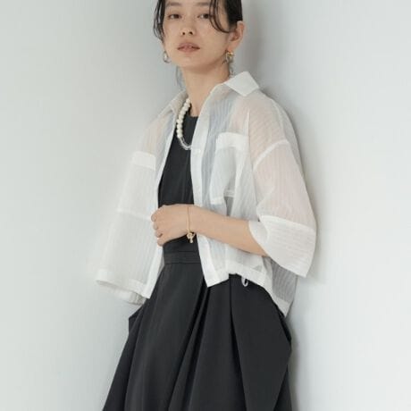 ショート丈のボックスシルエットで軽やかな印象のシアーブラウス。
