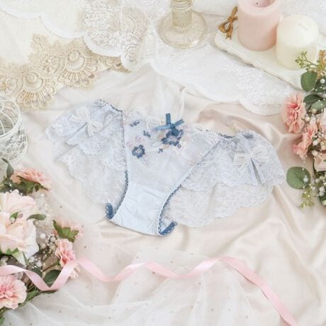 満開の花々を束ねたブーケをモチーフにした、ロマンティックなシリーズです。色とりどりのお花が咲きほこるレースは、ラメ糸をあしらい上品な輝きに。クラシカルな「トーションレース」をモチーフに現代風にアレンジし、スカラップをリボン柄で表現することで、繊細ながらも大人の可愛らしさを演出しました。両サイドにはリボンアップリケをあしらい、特別感をプラス。細部にまでこだわり抜いた装飾が、見ているだけで心をときめかせてくれる豪華なコレクションです。