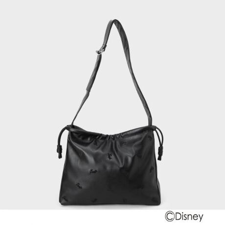 トレンドのドローストリング(巾着)デザインを、上品な素材で仕上げたショルダーバッグ。