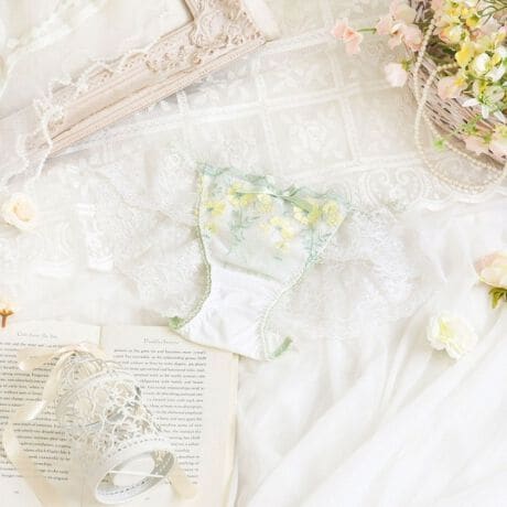 野に咲く花々を立体的に咲かせた、可憐なシリーズです。繊細に刺繍された花々には立体感のあるパッカー手法をほどこして、可愛らしく動きのある印象に。レース上辺にはアーチのような幾何学模様をあしらい、クラシカルな上品さもプラスしています。まるでお花が風に吹かれて舞っているような、新しい季節の訪れを感じるコレクションです。