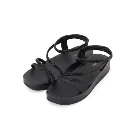 細幅のストラップにグラデーションで輝くラインストーンをあしらった、華やかさと上品さを兼ね備えたサンダル。