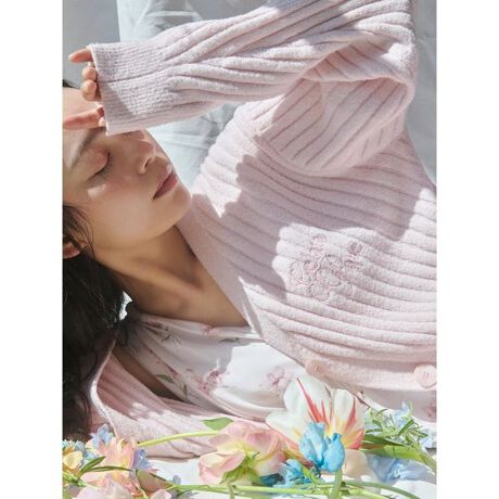 フローラルブーケのような可憐な色合いに魅了される、母の日のギフトにもぴったりなMOTHER’S DAYシリーズです。’スムーズィー’と’エアリーモコ’の糸を引き揃えた、柔らかさと滑らかさを兼ね備えたカーディガン。品のある程よい巾のリブと、ヒップまで隠れるざっくりとした丈感で、世代を問わず心地よく羽織れる1枚です。後ろ身頃の裾をやや長めに設定しているので、襟を抜いた着こなしも決まります。胸元にワンポイントで大きくロゴ刺繍を入れました。色はオフホワイト、イエロー、ピンクの3色をご用意。同シリーズのフラワー柄アイテムや雑貨とコーディネートしたり、母の日のギフトにもおすすめです。