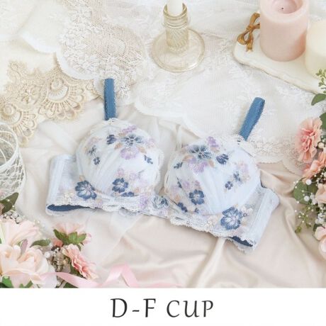 満開の花々を束ねたブーケをモチーフにした、ロマンティックなシリーズです。色とりどりのお花が咲きほこるレースは、ラメ糸をあしらい上品な輝きに。クラシカルな「トーションレース」をモチーフに現代風にアレンジし、スカラップをリボン柄で表現することで、繊細ながらも大人の可愛らしさを演出しました。リボンアップリケの中心にはきらめくラインストーンを、ブラジャーの中心には存在感のあるクリアチャームをあしらい、特別感をプラス。細部にまでこだわり抜いた装飾が、見ているだけで心をときめかせてくれる豪華なコレクションです。