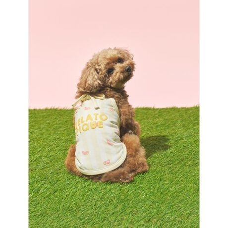 夏の気分を盛り上げるカラフルなストライプ柄に、弾けるフルーツやアイス柄をプリントしたCAT&DOGシリーズです。スイムウェア風のキュートなデザインで仕上げた、ひんやり心地良い接触冷感素材のプルオーバー。発泡プリントのぷっくりしたブランドロゴをあしらい、キャッチーに仕上げました。背中に保冷剤が入るポケット付きで、首元のリボンは洗濯がしやすいように解ける仕様になっています。色はラズベリー柄のピンク、グレープフルーツ柄のイエロー、スイカ柄のグリーン、アイス柄のブルーの4色展開。同シリーズの雑貨と組み合わせたり、きょうだいで色違いのコーディネートもおすすめです。