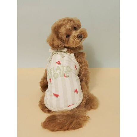 夏の気分を盛り上げるカラフルなストライプ柄に、弾けるフルーツやアイス柄をプリントしたCAT&DOGシリーズです。スイムウェア風のキュートなデザインで仕上げた、ひんやり心地良い接触冷感素材のプルオーバー。発泡プリントのぷっくりしたブランドロゴをあしらい、キャッチーに仕上げました。背中に保冷剤が入るポケット付きで、首元のリボンは洗濯がしやすいように解ける仕様になっています。色はラズベリー柄のピンク、グレープフルーツ柄のイエロー、スイカ柄のグリーン、アイス柄のブルーの4色展開。同シリーズの雑貨と組み合わせたり、きょうだいで色違いのコーディネートもおすすめです。