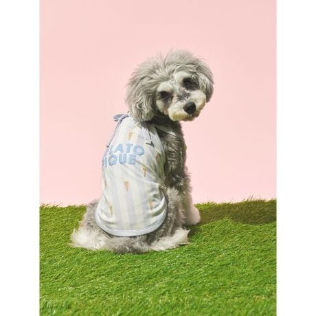 夏の気分を盛り上げるカラフルなストライプ柄に、弾けるフルーツやアイス柄をプリントしたCAT&DOGシリーズです。スイムウェア風のキュートなデザインで仕上げた、ひんやり心地良い接触冷感素材のプルオーバー。発泡プリントのぷっくりしたブランドロゴをあしらい、キャッチーに仕上げました。背中に保冷剤が入るポケット付きで、首元のリボンは洗濯がしやすいように解ける仕様になっています。色はラズベリー柄のピンク、グレープフルーツ柄のイエロー、スイカ柄のグリーン、アイス柄のブルーの4色展開。同シリーズの雑貨と組み合わせたり、きょうだいで色違いのコーディネートもおすすめです。