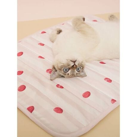 夏の気分を盛り上げるカラフルなストライプ柄に、弾けるフルーツやアイス柄をプリントしたCAT&DOGシリーズです。暑い時期にもひんやり涼しい、接触冷感のカットソー素材を使用したマット。抗菌防臭加工も施しています。くるっとコンパクトに折りたたむことができ、裏側は滑り止め付き。カフェマットとして使用したり、ドライブなどのお出かけにもおすすめです。色はラズベリー柄のピンク、アイス柄のブルーの2色展開。同シリーズのプルオーバーや雑貨と組み合わせてお楽しみください。