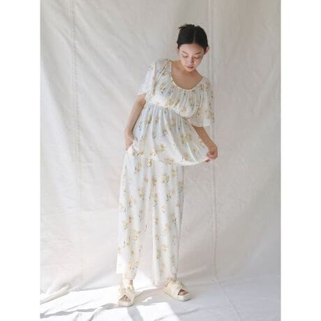 フローラルブーケのような可憐な色合いに魅了される、母の日のギフトにもぴったりなMOTHER’S DAYシリーズです。3色のブーケをイメージした、世代を問わずはきやすいフラワー柄のロングパンツ。きれいめカジュアルな裾広がりシルエットが、くつろぎの時間を品よく演出します。夏にちょうど良いさらっと軽やかな生地を使用し、両脇にポケット、透け防止の裏地も付けました。色はイエロー、ピンク、ネイビーの3色をご用意。同シリーズのプルオーバーや雑貨とコーディネートしたり、母の日のギフトにもおすすめです。