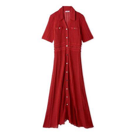 タックとアイレットの繊細な編み技法をミックスし、レースのような優美さを表現したニットワンピース。