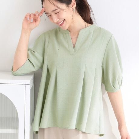 袖は立体感のあるタック入りで、気になる二の腕をさりげなくカバー。