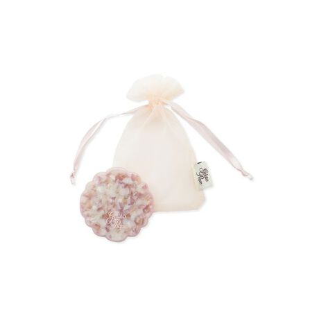 フローラルブーケのような可憐な色合いに魅了される、母の日のギフトにもぴったりなMOTHER’S DAYシリーズです。華やかなフラワー柄を思わせるアセチの生地を使用したミラー。花のようなカッティングと、柄生地と無地の2種類の生地を使用したトリムラインデザインが贅沢なアイテムです。オリジナル織りネーム付きの巾着にセットしてお届けします。色はクリーム、ピンク、ブルーの3色をご用意。同シリーズのルームウェアとコーディネートしたり、母の日のギフトにもおすすめです。