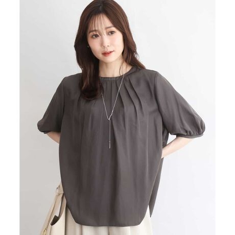 前身頃にタックを入れて立体感を出した人気素材のブラウス。涼しげな衿ぐり、袖幅もゆったりとさせて、暑くなる季節も涼しげに着こなせるデザインです。肘がちょうど隠れる袖丈は上品で大人な印象にぴったり。