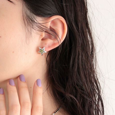 ・落ち着いたカラーの星モチーフにメタルフレームを組み合わせたデザイン