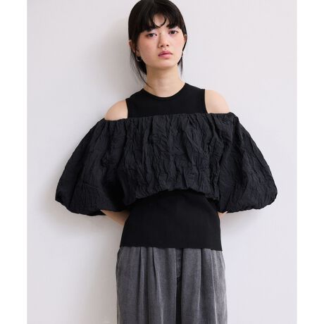 ボートネックはゴム仕様でオフショルダーとしても着用が可能。