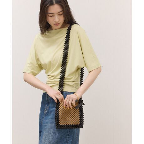 季節感のあるビーズ素材に、コーディネートのアクセントになる2トーン配色を組み合わせ、シンプルなスタイリングにも映える存在感のあるデザインに。