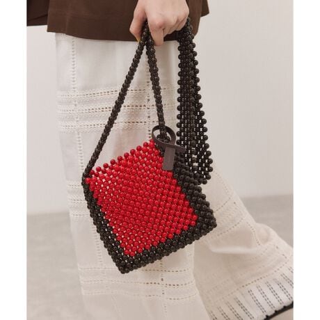 季節感のあるビーズ素材に、コーディネートのアクセントになる2トーン配色を組み合わせ、シンプルなスタイリングにも映える存在感のあるデザインに。