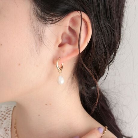 ・淡水パールは取り外し可能でシンプルなフープピアスとしても使える2WAY仕様◎