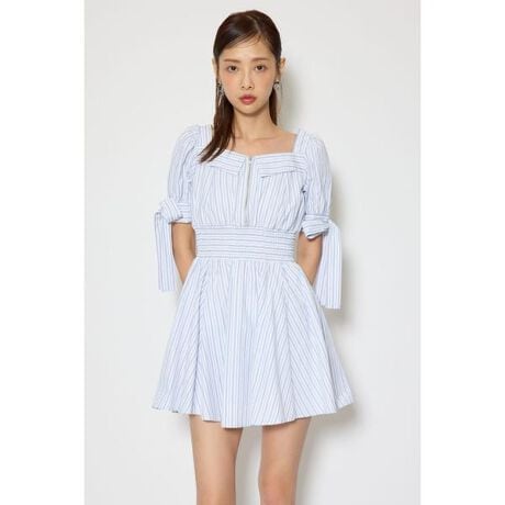 【袖リボンがポイントの女性らしいミニ丈シャツワンピース】■ポイント爽やかな印象を与えるシャツフレアワンピース。襟元はベース型で抜け感を出し、襟をふらし立体感を出しました。センターにジップを施すことでクールさを演出しウエストはぐるりとシャーリング仕様なのでとても着心地が良いのも嬉しいポイントです。■ディテール袖口部分には取り外しのできるリボンをセットし、リボンを付けて着用するのが可愛くてお勧めです。背中部分には共紐を施しているのでバックスタイルも抜け感があってきれいに見えるのも拘りです。■スタイリングカラー展開が華やかなのでスニーカ合わせも◎ですし、ショートブーツやミュール合わせも可愛く着ていただけます。■生地透け感:なし裏 地:あり(袖以外)伸縮性:なし光沢感:なし厚 さ:なし■商品のお気に入り登録お気に入りアイテムの再入荷・在庫1点などの通知を受け取ることができます。[注意事項]※画像の商品はサンプルです。実際の商品と仕様、加工が若干異なる場合があります。※画像の商品は光の照射や角度、お使いのモニター環境により、実物と色味が異なる場合がございます。※着用、お取り扱いの際は、アテンションタグをご確認ください。