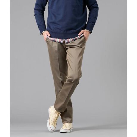 NEWYORKER MENで定番のノータックチノパンツ。着回ししやすいシンプルなデザインと長く履ける耐久性が魅力です。カジュアルシャツやカットソーと合わせたカジュアルスタイルをはじめ、ジャケット・ブレザーと合わせたジャケットスタイルなど、幅広いシーンにマッチする定番アイテムです。