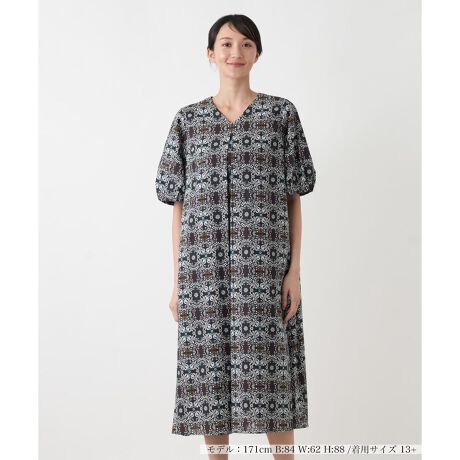 一枚で夏の装いが完成する、華やかな柄の半袖ワンピース。顔周りをすっきりと見せるVネックが、涼しげで上品な印象を与えます。身体のラインを拾いすぎないリラックス感のあるシルエットで、快適な着心地を叶えます。ご自宅でのお手入れが簡単な素材を使用しているため、汗ばむ季節も気兼ねなくお召しいただけます。旅先でのリゾートスタイルから、日常のお出かけまで、様々なシーンを彩る主役級の一枚。サンダルやかごバッグを合わせて、季節感あふれるコーディネートをお楽しみください。