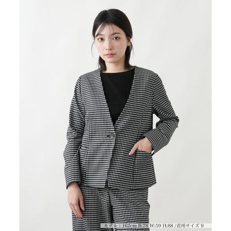 ギンガムチェックノーカラージャケット