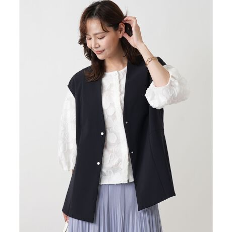 特別な日にふさわしい、優美な花柄が印象的な「セレモニー」コレクションのブラウスです。上品な華やかさを持つデザインは、お祝いの席に洗練された彩りを添えます。ノーカラーの丸首デザインが首元をすっきりと見せ、ネックレスなどのアクセサリーとも美しく調和します。気になる二の腕をカバーしつつ、手元に抜け感を与える七分袖も嬉しいポイント。ジャケットのインナーとして着用すれば、Vゾーンから覗く花柄が顔周りを明るく見せてくれます。スカートにもパンツにも合わせやすく、セレモニーに限らず、お食事会など幅広いシーンで活躍する一枚です。