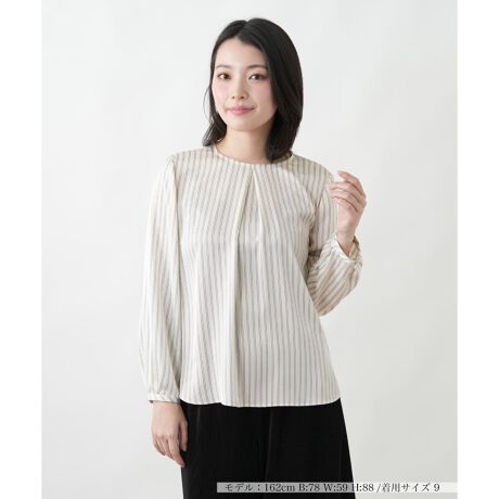 ストライプタックブラウス【Leilian WHITE LABEL】