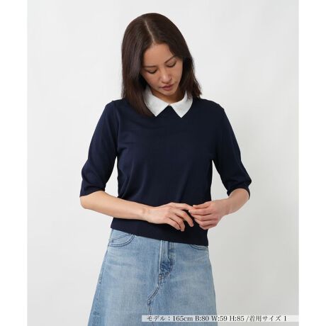 襟付きのデザインがクラシカルな印象を与えるクロップドスリーブトップスです。レーヨンにナイロンをブレンドした素材で、滑らかな肌触りと適度なストレッチ性が快適な着心地を叶えます。コントラストの効いた襟はすっきりとした首元を演出しつつ、型崩れしにくいのも嬉しいポイント。程よいフィット感のあるシルエットが身体のラインをきれいに見せ、きれいめなスカートからカジュアルなデニムまで幅広いボトムスと好相性のアイテムです。